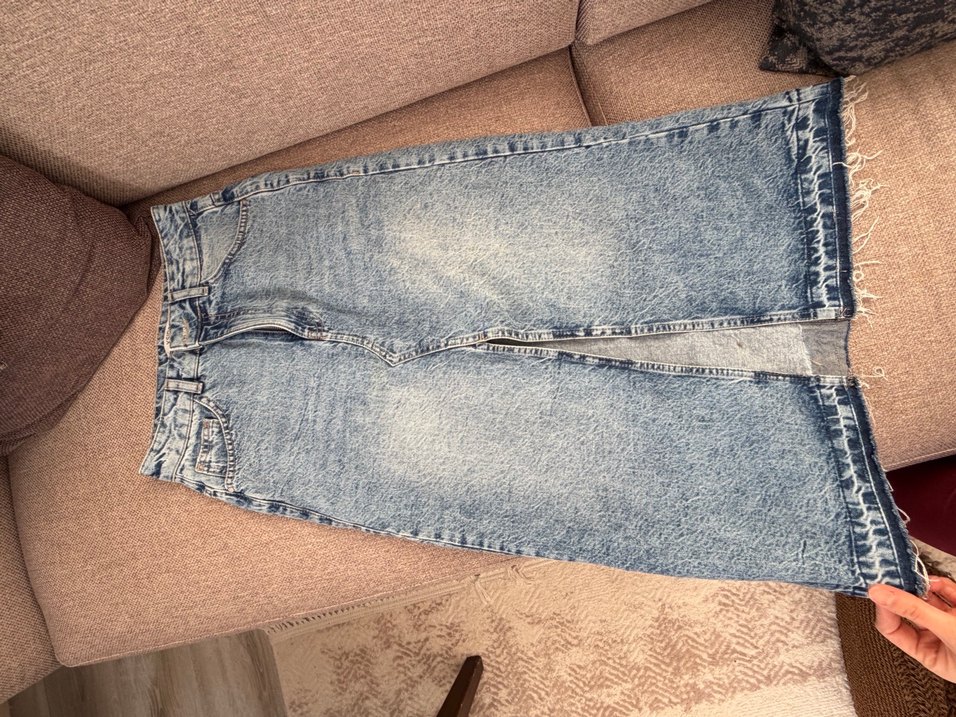 Kadın Gri Denim Midi Etek