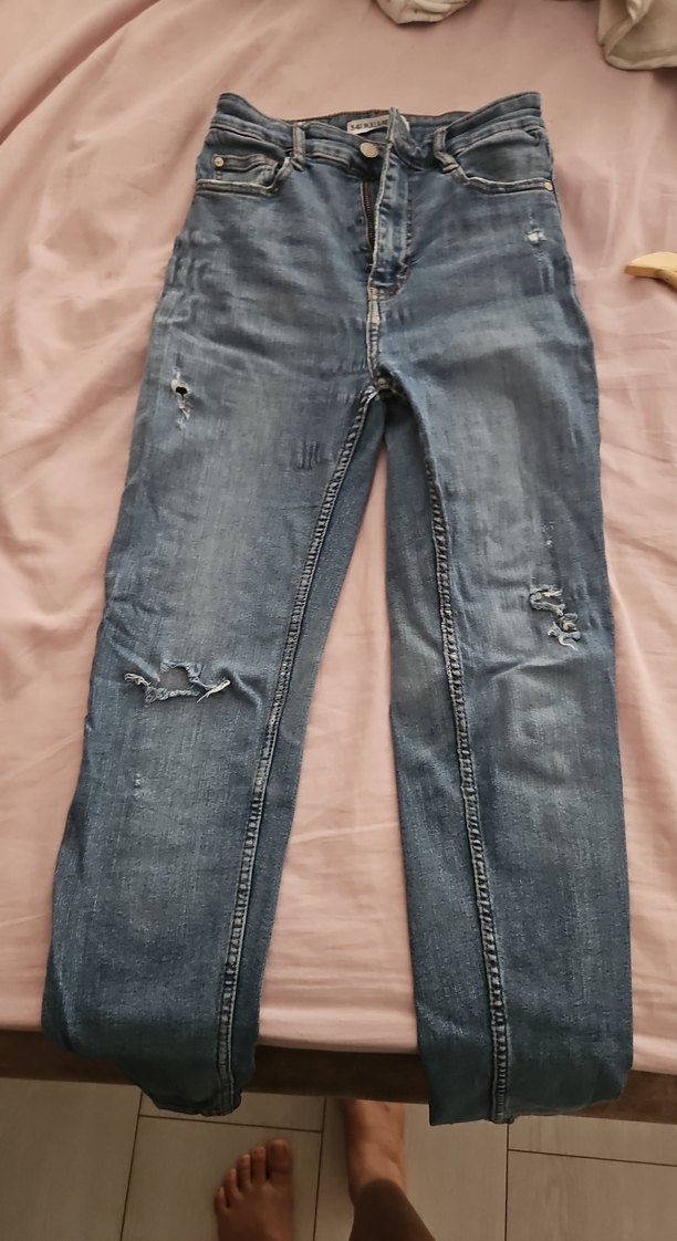 Gri renkte, midi boy, kemer tokalı ve fitted kesim kadın denim jean pantolon. Normcore tarzıyla günlük kullanıma uygun, hafif yıpratma detayları bulunur.