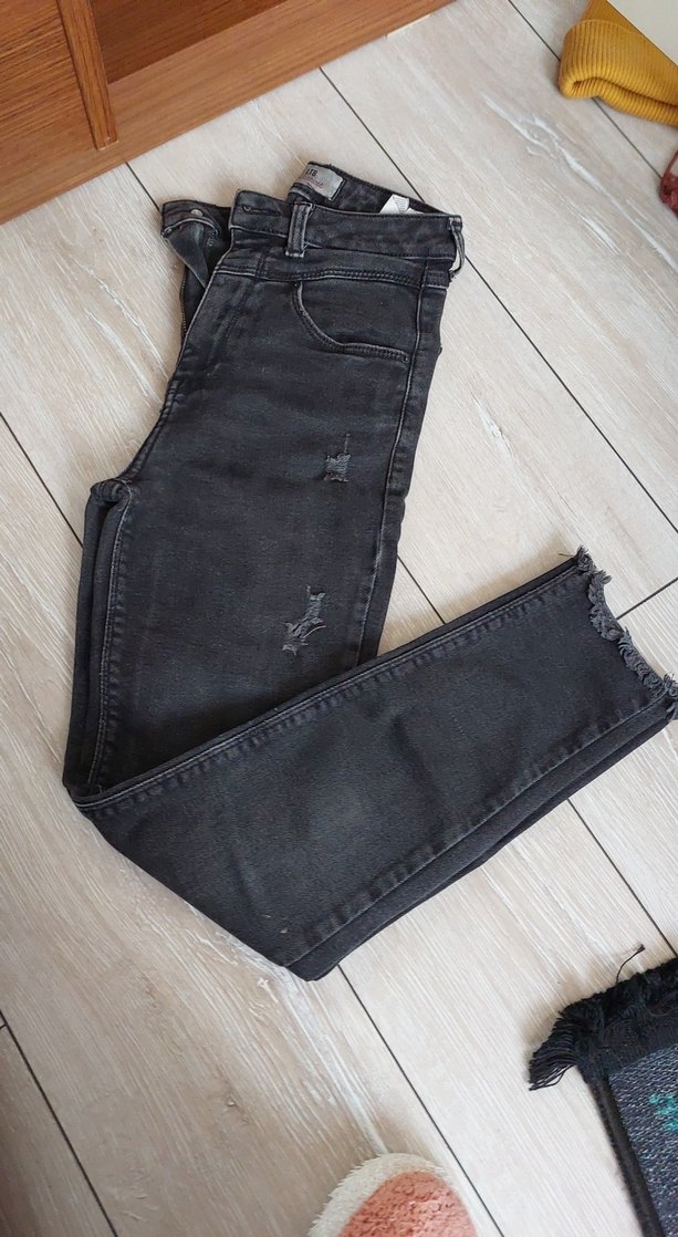 Gri renkli, regular fit ve midi boy kot pantolon, tokalı detaylıdır. Günlük sokak stili için uygundur.