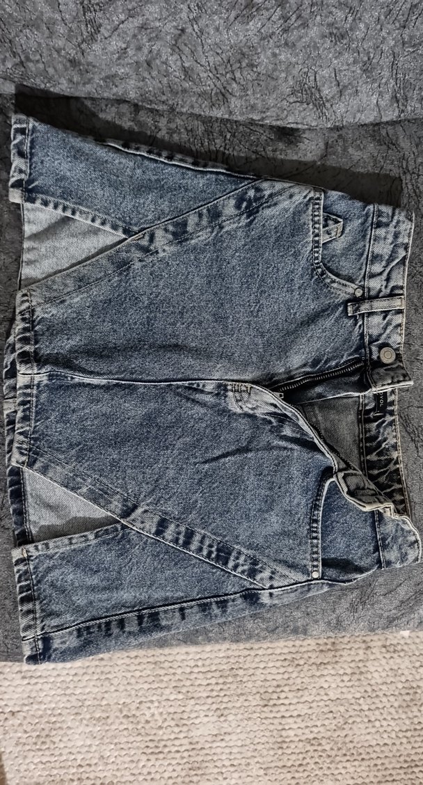 Mavi denim kumaştan yapılmış,mini uzunluğunda kadın jean etek. Günlük kullanıma uygun, sade ve desensiz tasarım.