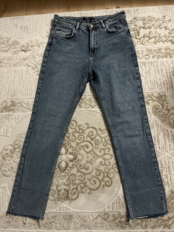 Gri renkte, regular fit ve midi boyda kadın denim jean. Günlük rahat kullanım için tasarlanmış, bağcıklı detaylı sokak stili pantolon.
