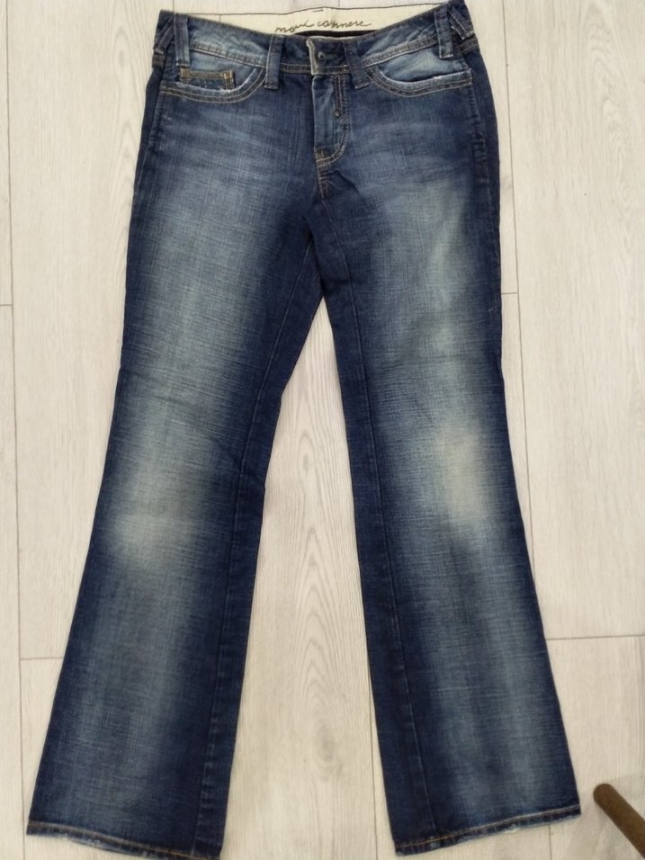 Kadın kot pantolon, regular fit ve midi boyda, kemerli bel tasarımıyla. Denim kumaştan, lacivert-gri tonlarında, günlük sokak stili için uygundur.
