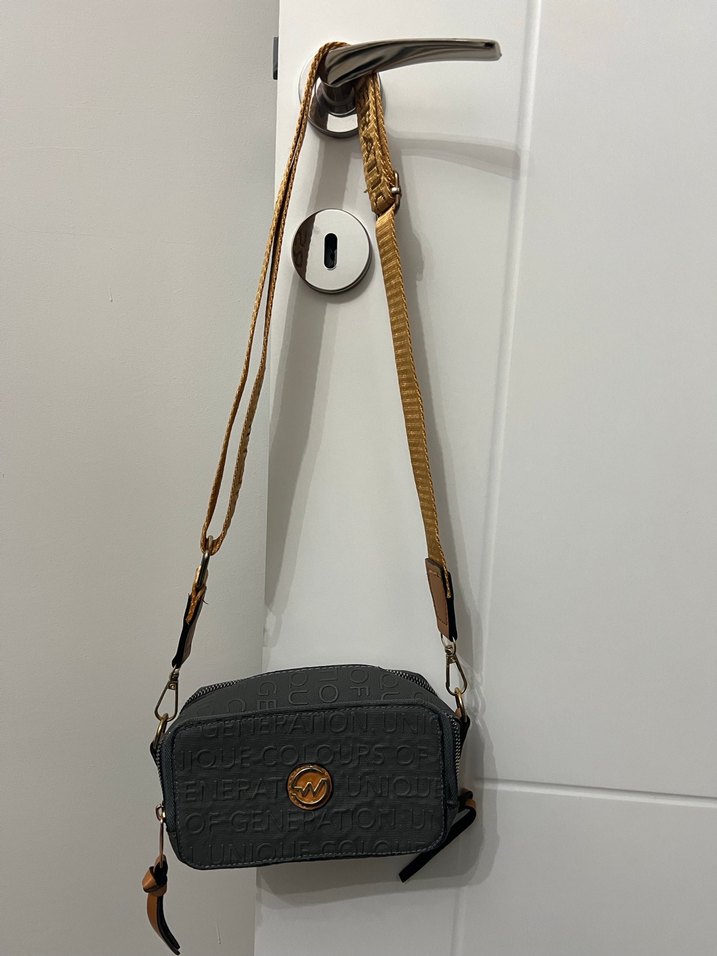 Kadınlar için bel detaylı, gri deri ve yılan desenli çapraz askılı çanta, trend sokak giyimi için uygun.