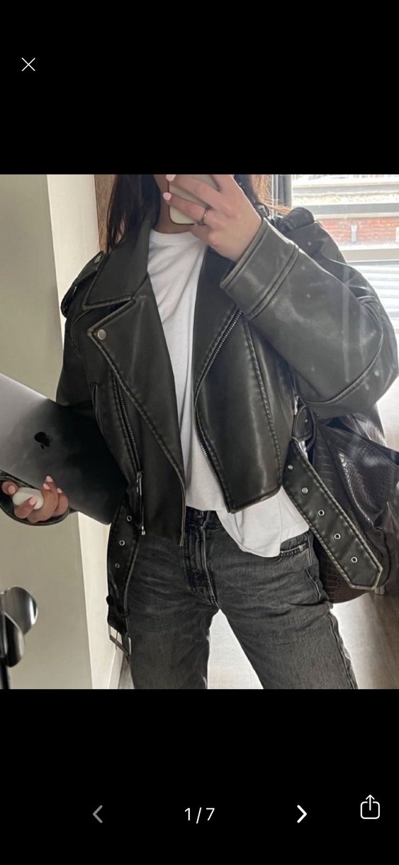 Trendy, kemerli ve normal boyda gri deri ceket. Notched lapel yaka ve askılı kollara sahip, günlük rahat sokak stili için uygundur.