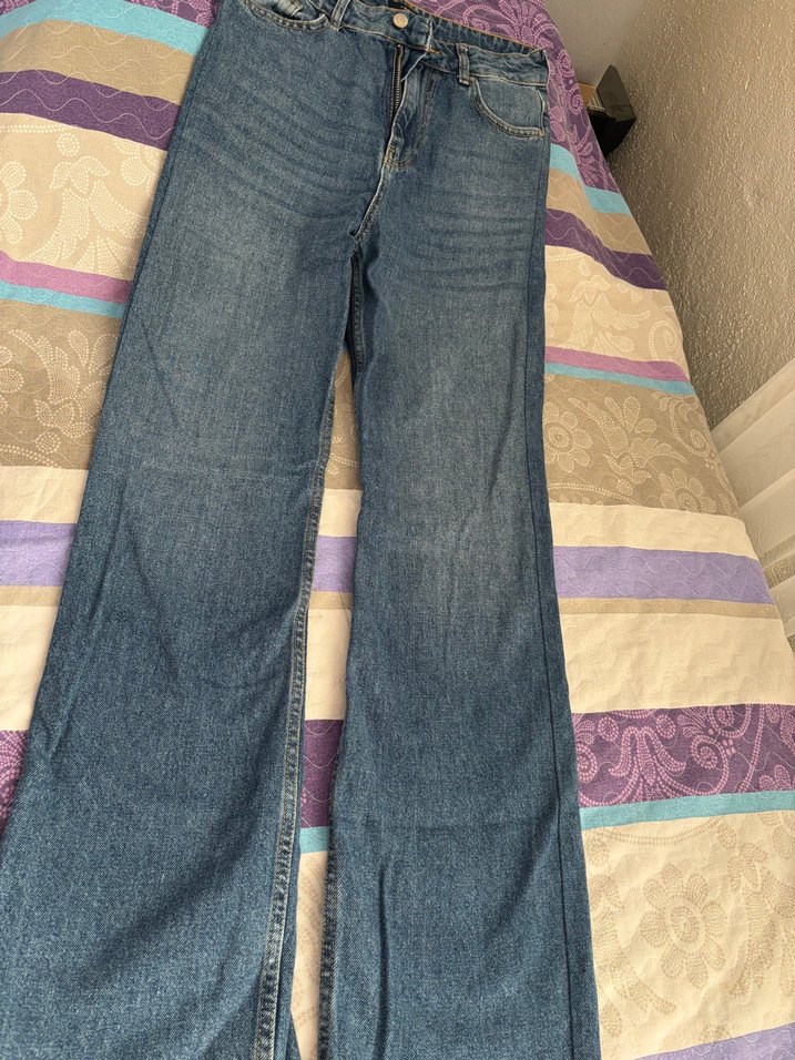 Düğmeli, bol kesim, uzun boy kadın jean. Mavi-gri tonlarında, tie-dye desenli denim kumaştan, günlük sokak modasına uygun. Az kullanılmıştır