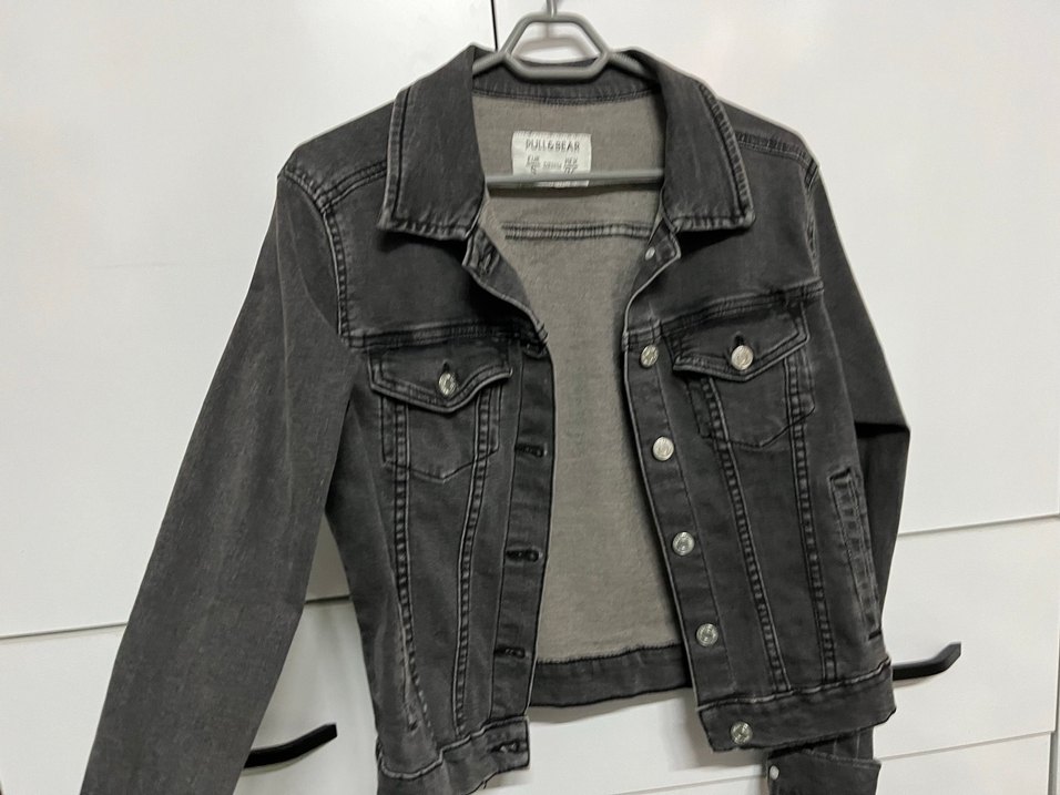 Bu kadın gri düğmeli denim ceket, oturmalı kesim ve notlu yaka detayına sahiptir. Uzun kollu ve midi boydadır, günlük rahat kullanım için uygundur. Marka: Pull&Bear.