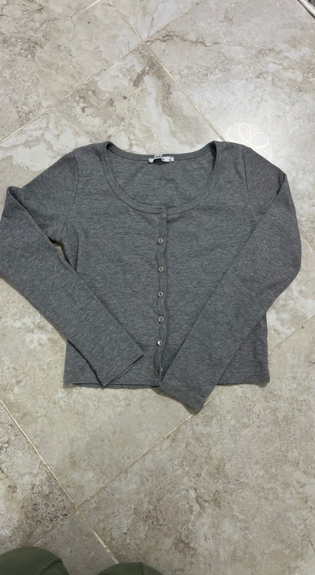 Kadınlar için uzun kollu, yuvarlak yakalı ve düğmeli önü olan pamuklu hırka. Rahat kesimi ve normal midi boyuyla günlük kullanıma uygundur. Düz gri tasarımıyla konforlu ve sade bir stil sunar.