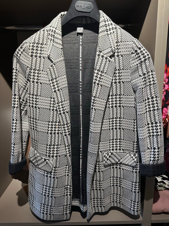 Gri ekose desenli, düğmeli, normal kesim uzun kollu blazer ceket. Günlük rahat kullanıma uygundur.