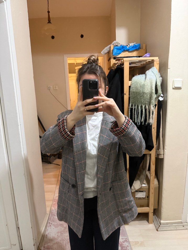 Gri ekose desenl kollrı katlı blazer s-m beden uyumlu , sorunuz varsa yazabilirsiniz