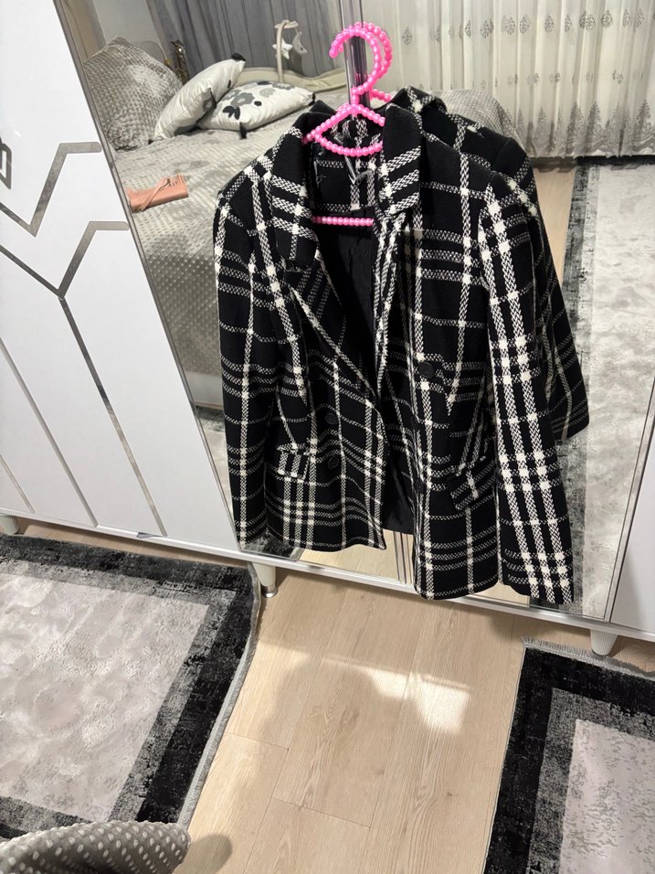 2 defa giyildi siyah ekoseli kadın blezer ceket
