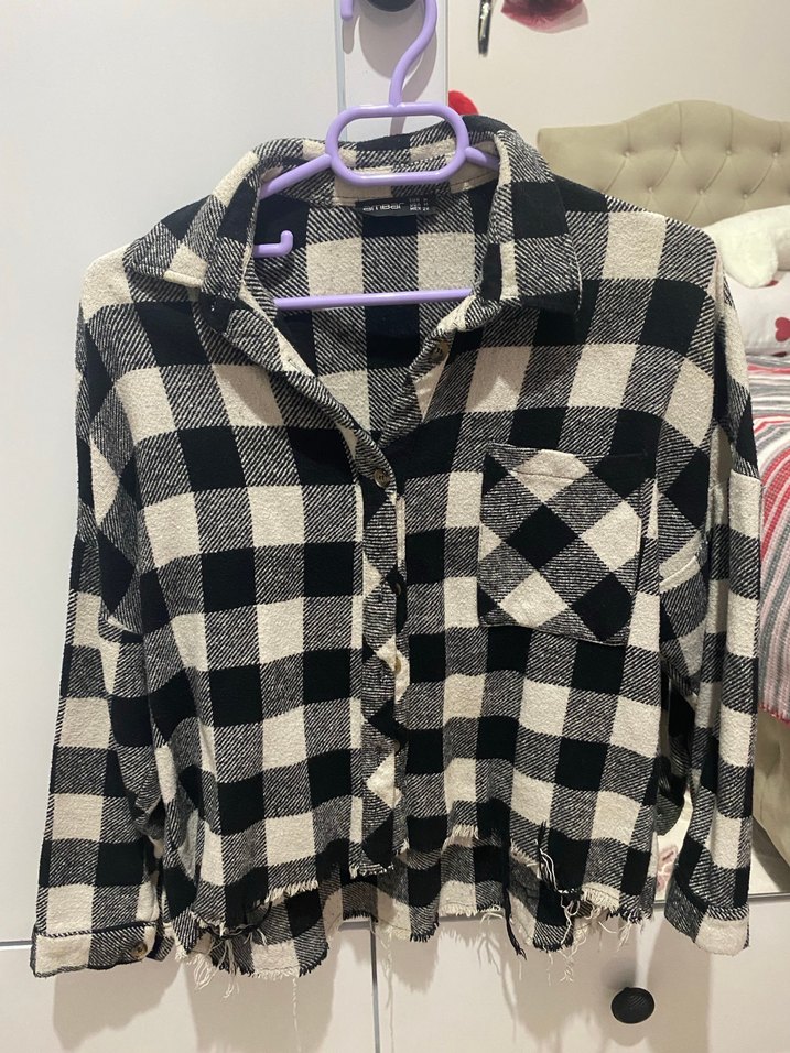 Kadın Gri Ekose Pamuklu Gömlek
