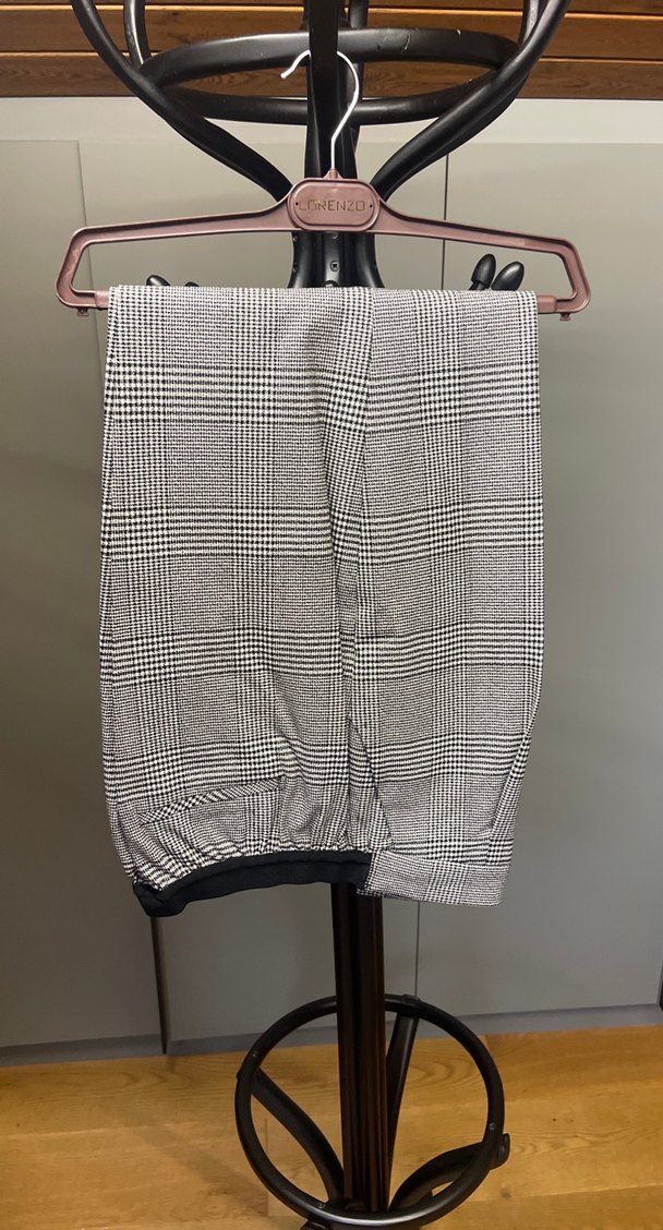 Kadın Gri Ekose Pilili Kumaş Pantolon
