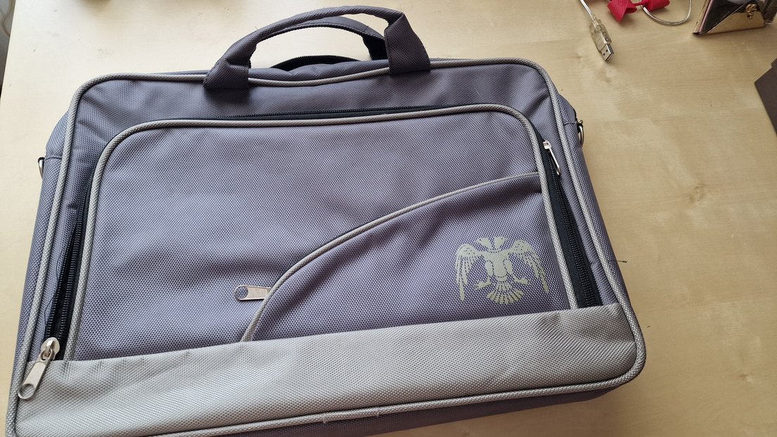 Gri renkli, fermuarlı kapaklı ve baskılı kartal desenli kadın laptop çantası, iş ve sokak stili için uygun.