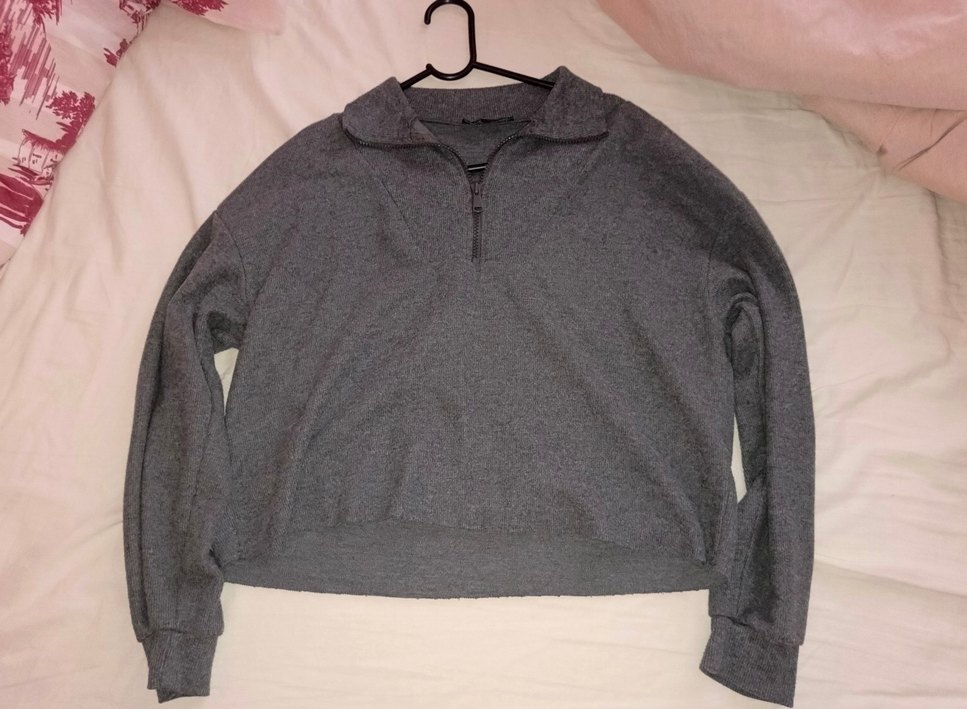 Kadın Gri Fermuarlı Yüksek Yakalı Sweatshirt - Görsel 1