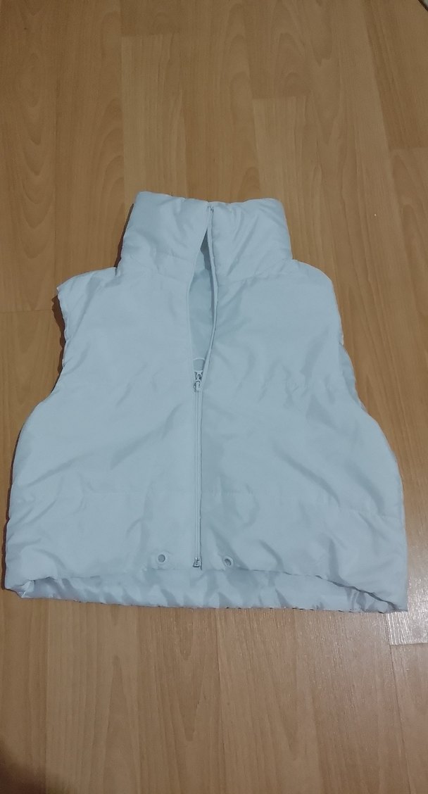 Fermuarlı, yüksek yakalı, gri renkte, kolsuz ve midi boyda, yumuşak ve sıcak kumaştan yapılmış fit kesim yelek. Dış mekan kullanımı için uygundur.