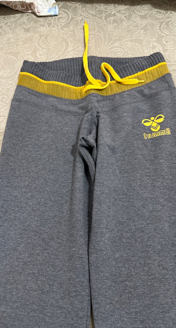 Hummel markalı, fermuarlı cepli, sarı detaylı gri kadın eşofman altı. Yumuşak ve sıcak kumaştan, spor için uygun, şık streetwear tarzında. ♀️