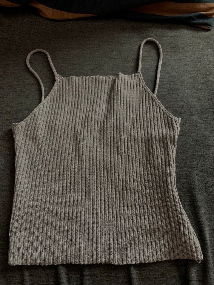 Kadınlar için ince askılı, yüksek yakalı ve triko simli kumaştan yapılmış gri renkli, rahat ve sade tasarımlı atlet. Addaxtan almıştım küçük geldiği için hiç giymedim
