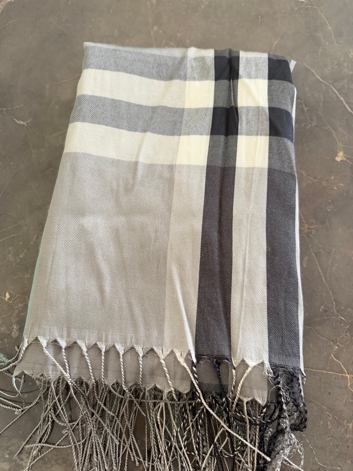 Kadınlar için gri tonlarda, ipek görünümlü ve drapeli bohem tarzda Paris esintili şal. ️