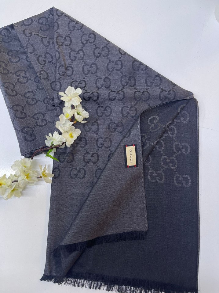 Kadınlar için gri renkte, ipek görünümlü, drapeli şal. Klasik ve çağdaş tarzı bir araya getirir, rahat ve şık bir görünüm sunar.