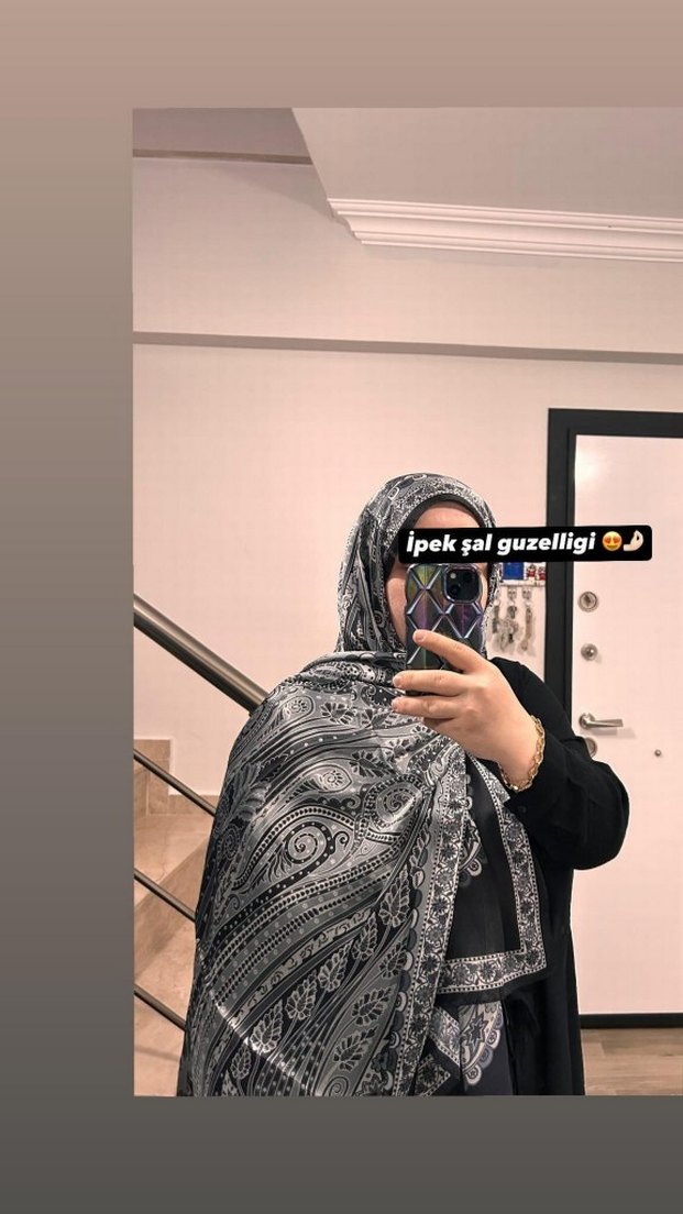 Kadın Gri İpek Şal Drapeli