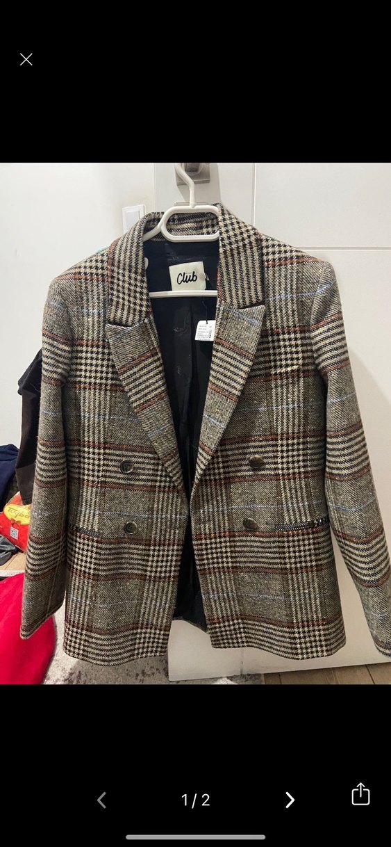 Kadın Gri Kahverengi Ekose Yün Blazer