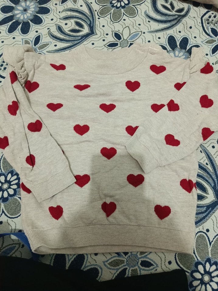Kadın Gri Kalp Desenli Örgü Kazak
