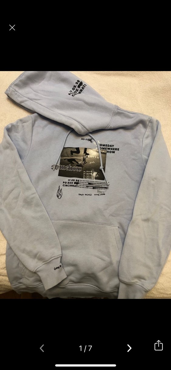 Gri kapüşonlu sweatshirt, baskılı detaylara sahip, bol kesim ve yumuşak, sıcak kumaştan üretilmiştir. Rahat sokak stili için uygundur.