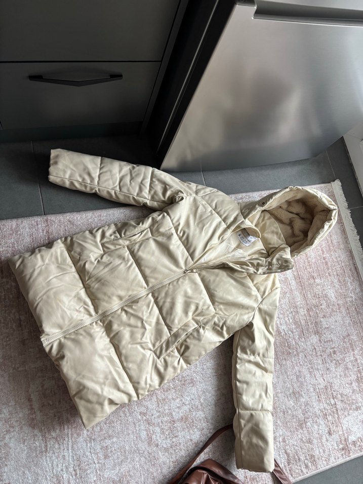 Kapüşonlu, uzun kollu ve midi boyda bu kadın mont, rahat sentetik kumaştan ve kürk detaylıdır. Düz desensiz, sokak modasına uygun, günlük kullanım için idealdir.