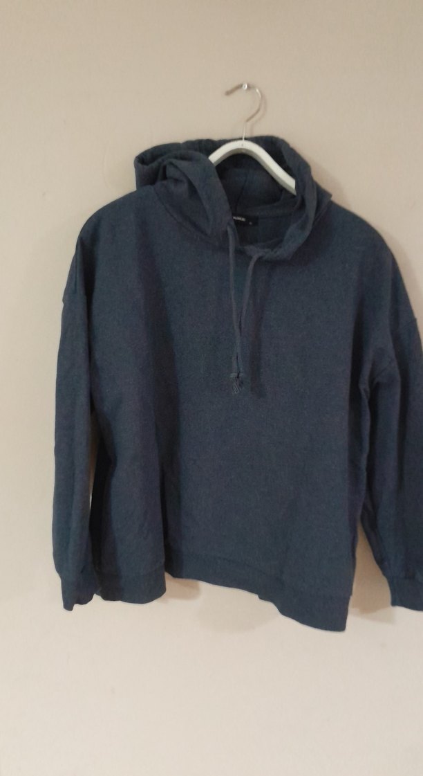 Kadın sweatshirt, yüksek yakalı ve uzun kollu, salaş kesimdir. Yumuşak ve sıcak kumaştan yapılmış gri renkli, rahat sokak tarzı bir modeldir.