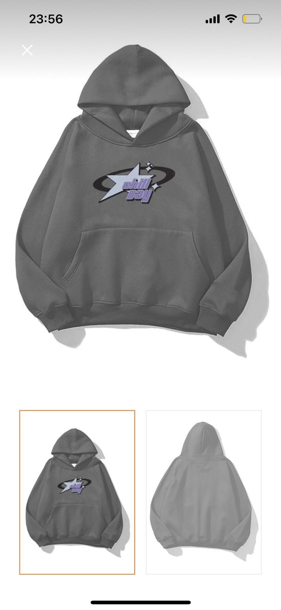 Kadın gri kapüşonlu sweatshirt, rahat bol kesim ve uzun kollu, baskılı desenli. Yumuşak ve sıcak kumaştan, spor ve günlük kullanıma uygun. ️nokta şeklinde lekesi var