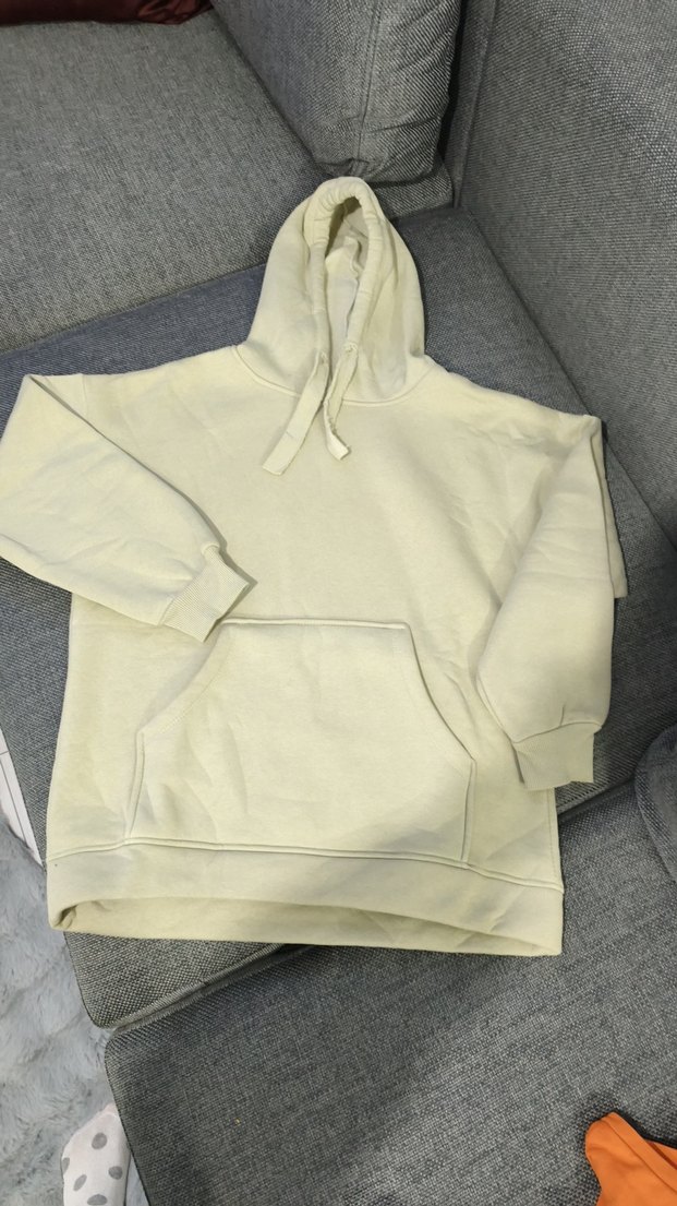 Kadınlar için uzun kollu, kapüşonlu ve bol kesim gri sweatshirt. Yumuşak ve sıcak kumaştan, rahat athleisure tarzında. Önde cepli, düz ve normal boyda.