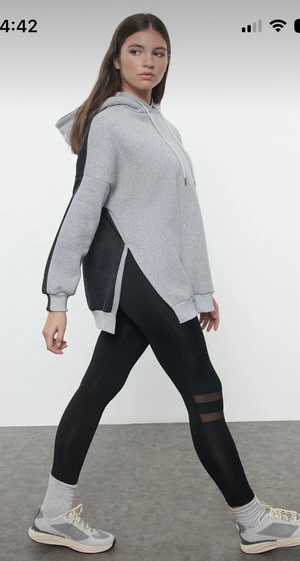 Kadınlar için yüksek yakalı, uzun kollu ve yan yırtmaçlı gri bol kesim sweatshirt. Yumuşak sentetik kumaştan, spor ve günlük sokak tarzına uygun. Hiç giyilmedi bedeni büyük geldi ve iade sürecini geçirdiğim için satıyorum