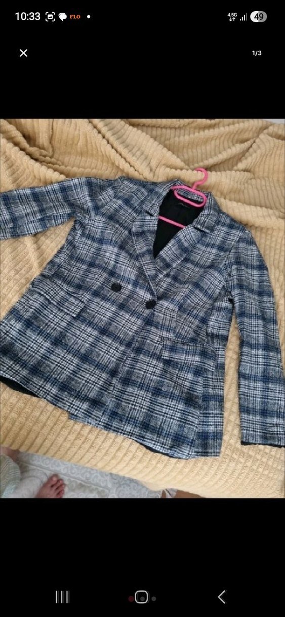 Kadın Gri Kareli Düğmeli Blazer Ceket
