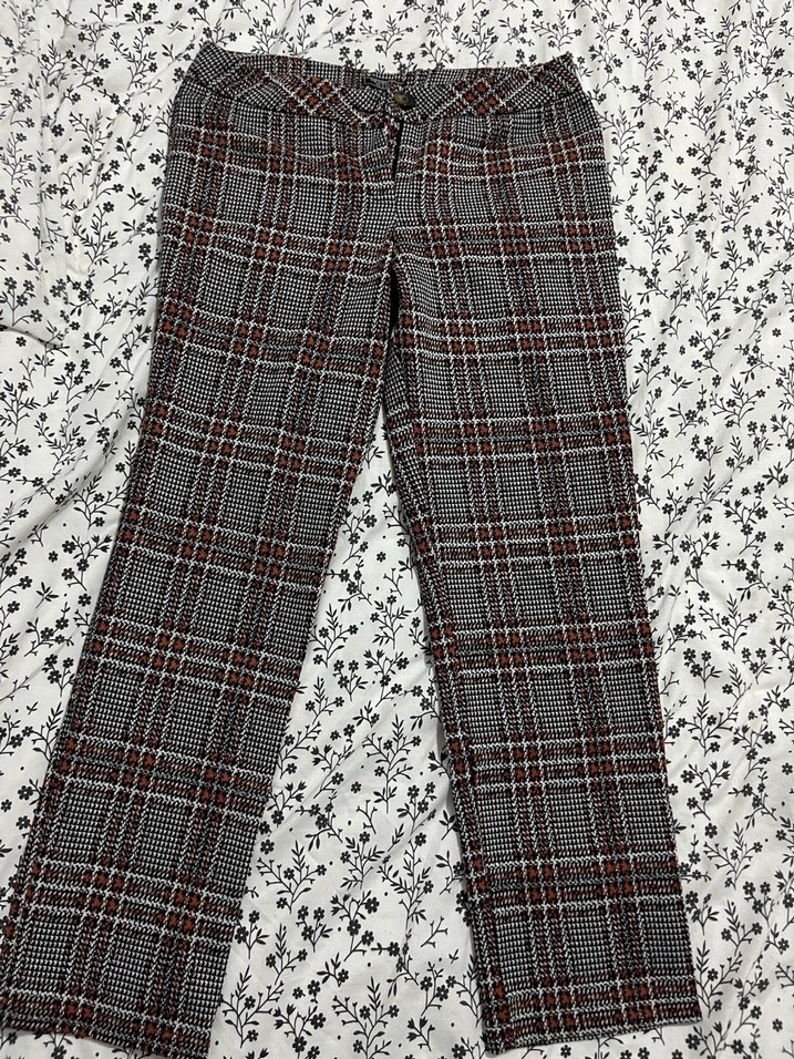 Kadınlar için gri kareli kumaş pantolon, normal boy ve regular fit kesime sahiptir. Günlük kullanıma uygun, rahat dokulu ve dantel detaylıdır.