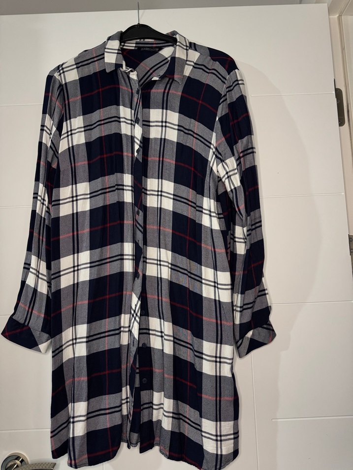 Kadınlar için uzun kesim, bol kesim, düğmeli, yakalı uzun kollu gri kareli pamuklu gömlek. Günlük rahat stil için uygundur.