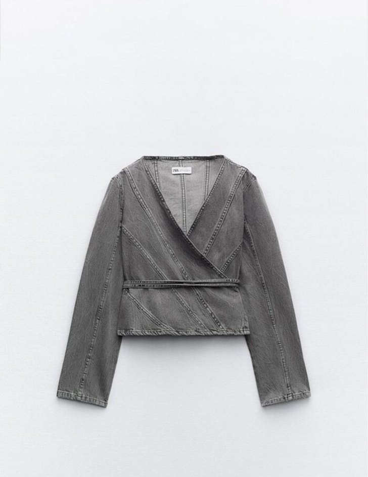Kadın Gri Kemerli Denim Ceket bluz