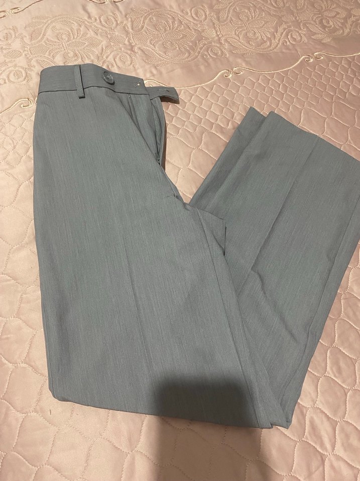 Kadınlar için gri keten kumaştan, kemerli, düz ve desen içermeyen, normal boy midi uzunluğunda, regular fit pantolon. İş ortamları için uygundur.