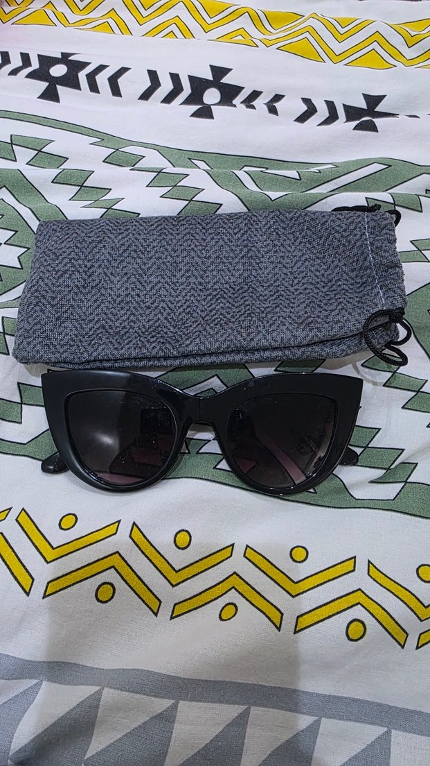 Kadınlar için siyah çerçeveli, gri kılıfı olan sokak tarzı güneş gözlüğü.