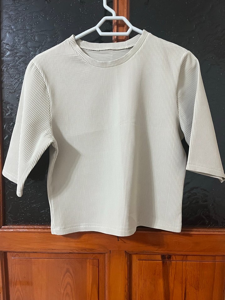 Kadınlar için kısa kollu, yuvarlak yakalı ve rahat kesimli tişört. Pürüzsüz sentetik kumaştan yapılmış, kısa boy ve desen içermeyen minimalist tasarıma sahip. Günlük sokak stili için uygun.