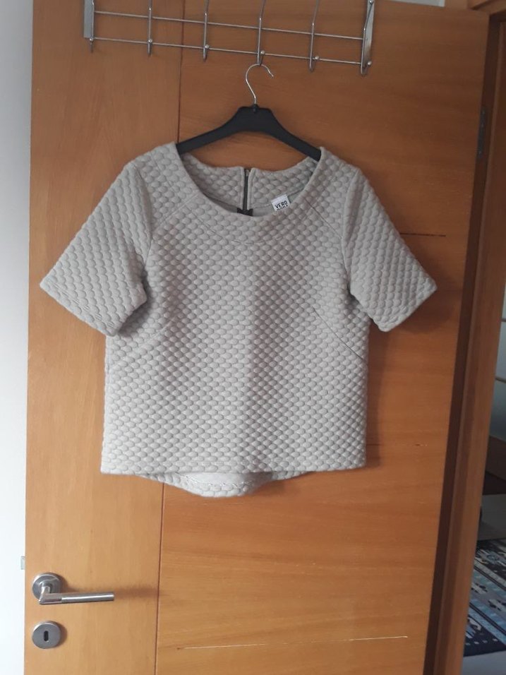 Kadınlar için kısa kollu, yuvarlak yakalı, bol kesim triko bluz,kısa boyda ve sade gri renktedir. Günlük sokak stiline uygundur.