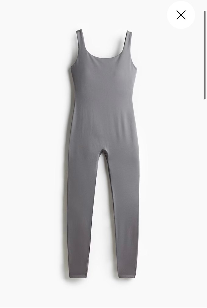 Düz gri renk, kolsuz ve düz yakalı, midi boy tulum, pürüzsüz sentetik kumaştan üretilmiştir.