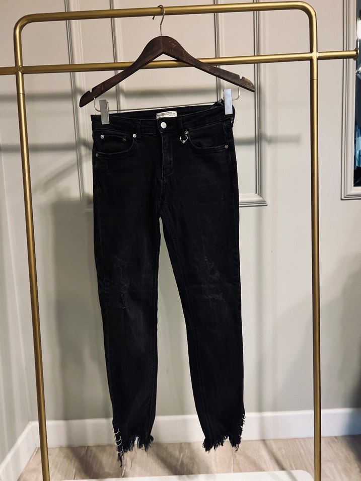 Gri batik desenli, kadın kot pantolon, günlük sokak stili için uygun.