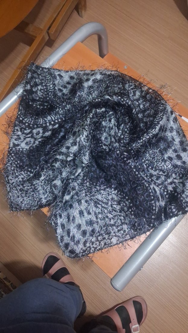 Kadınlar için gri renkte, kürk görünüm ( ince iplik çıkıntıları var onlar kürk göünümü veriyor.) gotik tarzda şık ve rahat bir fulardır. ölçüleri 35× 120cm. dikdörtgen.