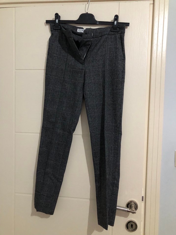Gri renkte, kemerli, regular fit kadın kumaş pantolon. Midi boyda, desen içermeyen ve sentetik yumuşak kumaştan üretilmiştir. Ofis için uygundur.