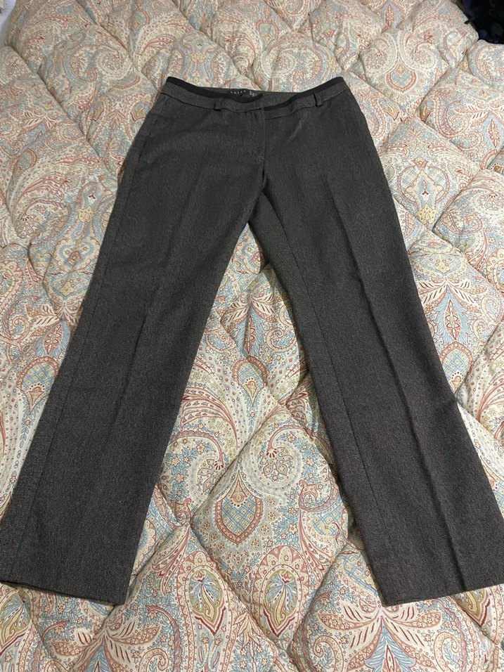 Kadınlar için gri renkli kumaş pantolon, regular fit kesim ve kemerli. Ofis ve günlük şıklık için uygun, desen içermeyen midi boyda, sentetik kumaştan yapılmıştır.