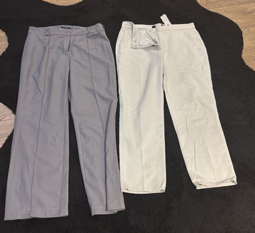 Kadın gri pamuk kumaştan, normal boy midi, regular fit pantolon. İş ortamı için rahat ve şık bir tercih.