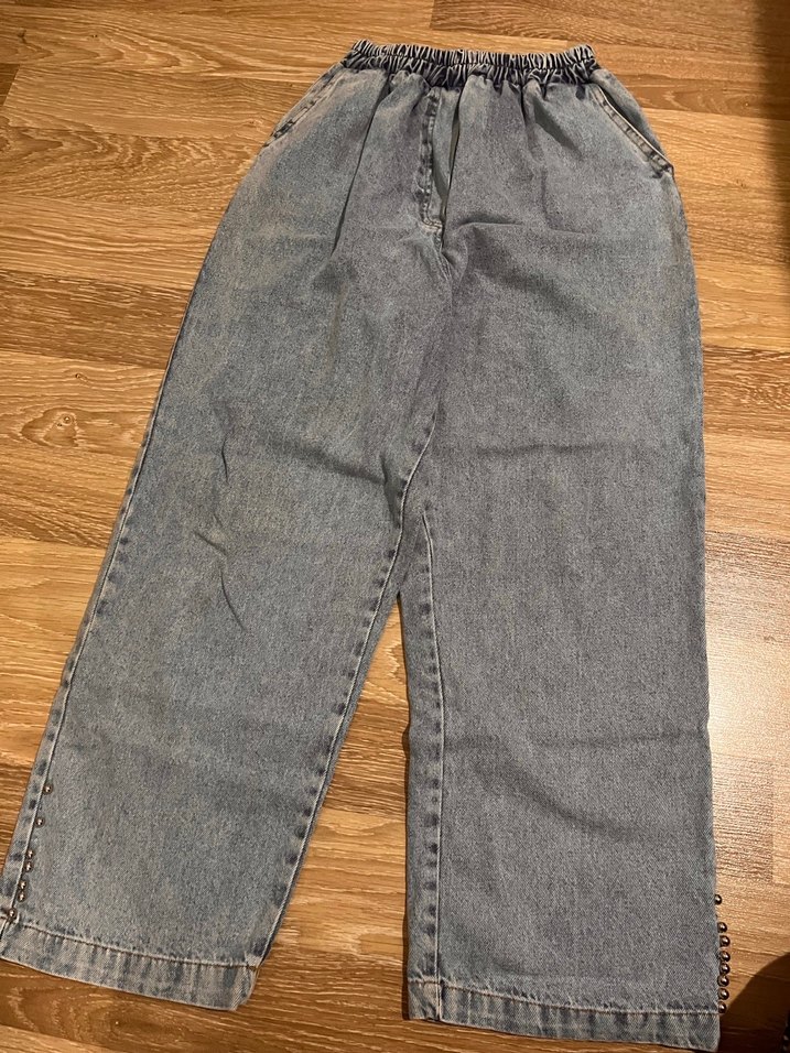 Kadınlar için gri denimden üretilmiş, bol kesim ve düğme detaylı, günlük kullanıma uygun rahat normcore tarzı pantolon.