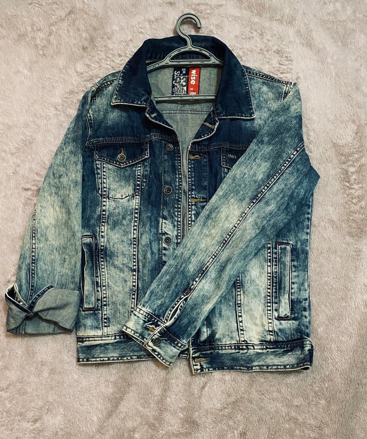 Kadın Gri Mavi Batik Desenli Denim Ceket