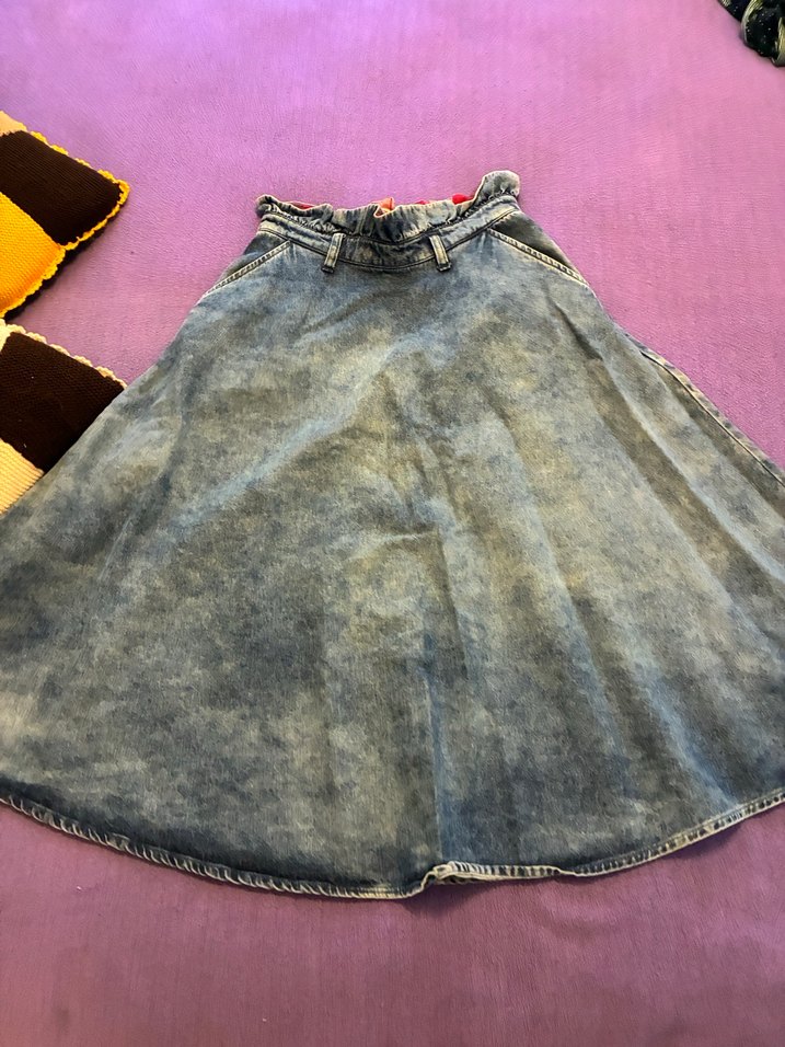 Kadın Gri Mavi Batik Desenli Midi Kot Etek
