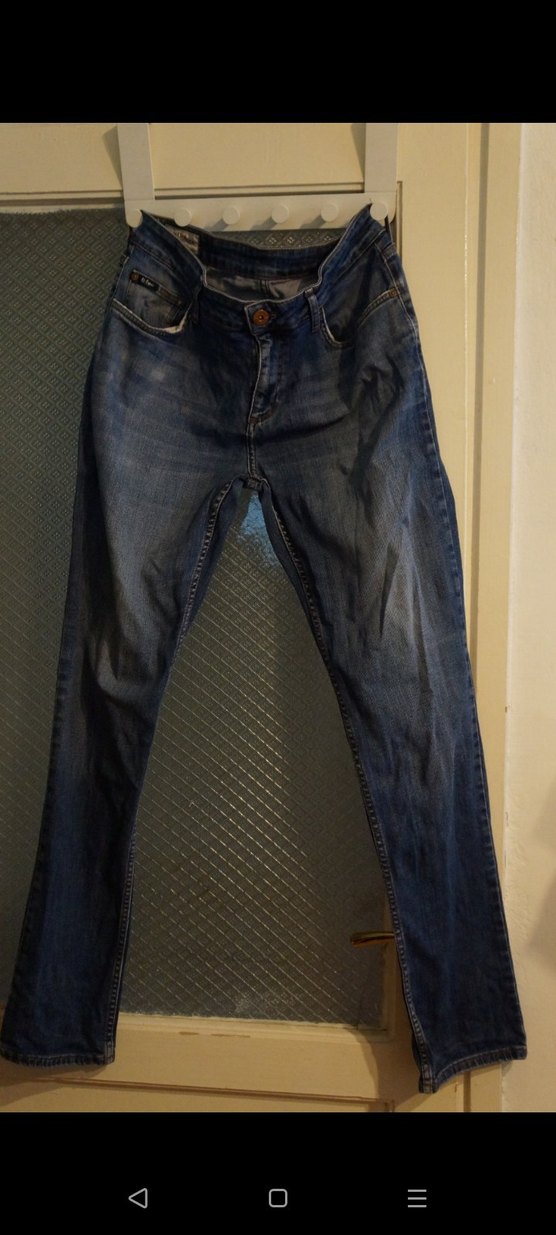 Gri mavi renkte, bol kesim, tokalı detaylı kadın denim pantolon, midi boy, günlük rahat sokak stiline uygun.